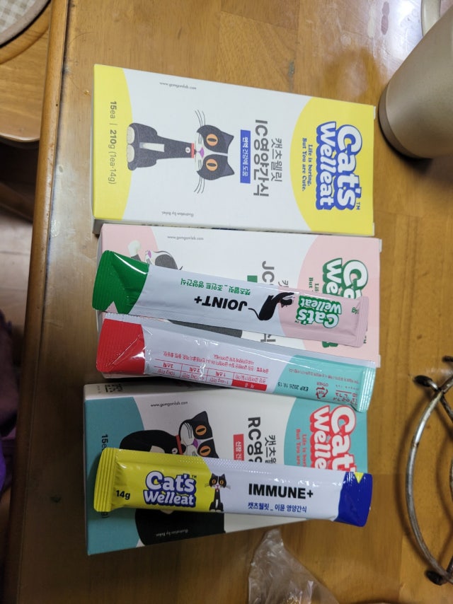 성분이 일단 좋다고 해서 일반 츄르보다 안심하고 먹입니다. 영양제처럼 하루에 하나씩 줘요.