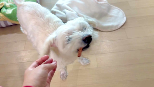 우리강아지의 최애 간식이에요 집에서는 사탕이라고 부르는데 사탕시켜놨다니까 고맙다고뽀뽀해줬어요